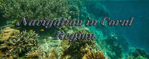 In good weather corals can be seen with a height of about 10 – 20 meters. Coral patches with depths less than 6 – 8 meters should be visible at about half a mile. Windward or exposed side of coral reefs are more uniform than leeward side. Windward side may have water breaking over it thus more easily seen. Leeward side frequently have detached coral heads which may not be seen. “Pass on the weather side” because edges and off lying pinnacles will be shown by breaking water.